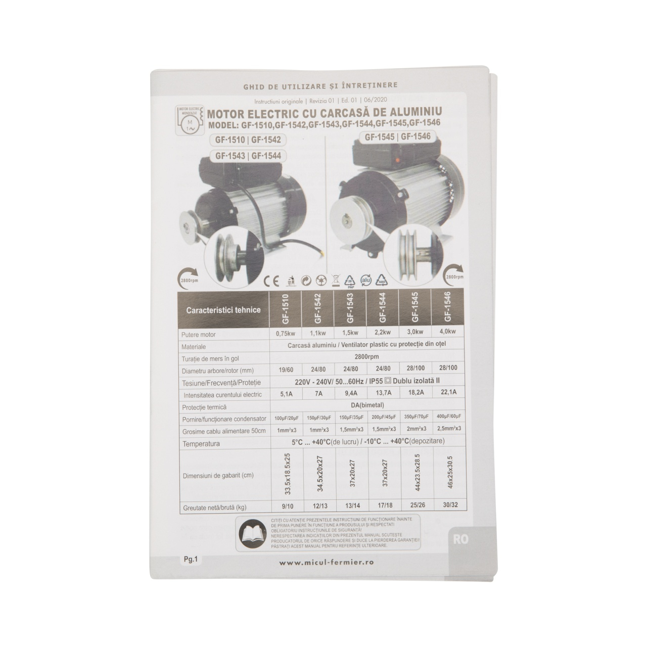 Motorul electric, 2800 rpm, 1.1 KW, cu carcasa de aluminiu, Micul Fermier GF-1542