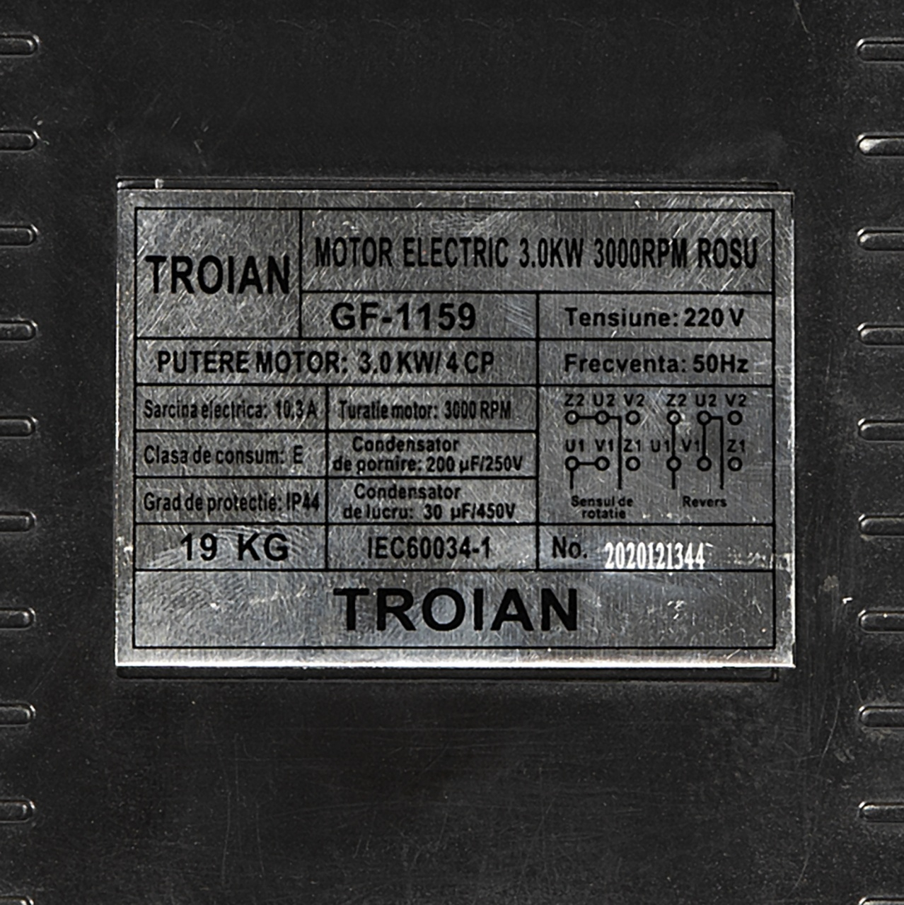 Motorul electric 3.0 kw ,3000rpm, TROIAN ROSU, monofazat de calitate superioara este construit pentru a rezista ani de utilizare la o performanta remarcabila.
