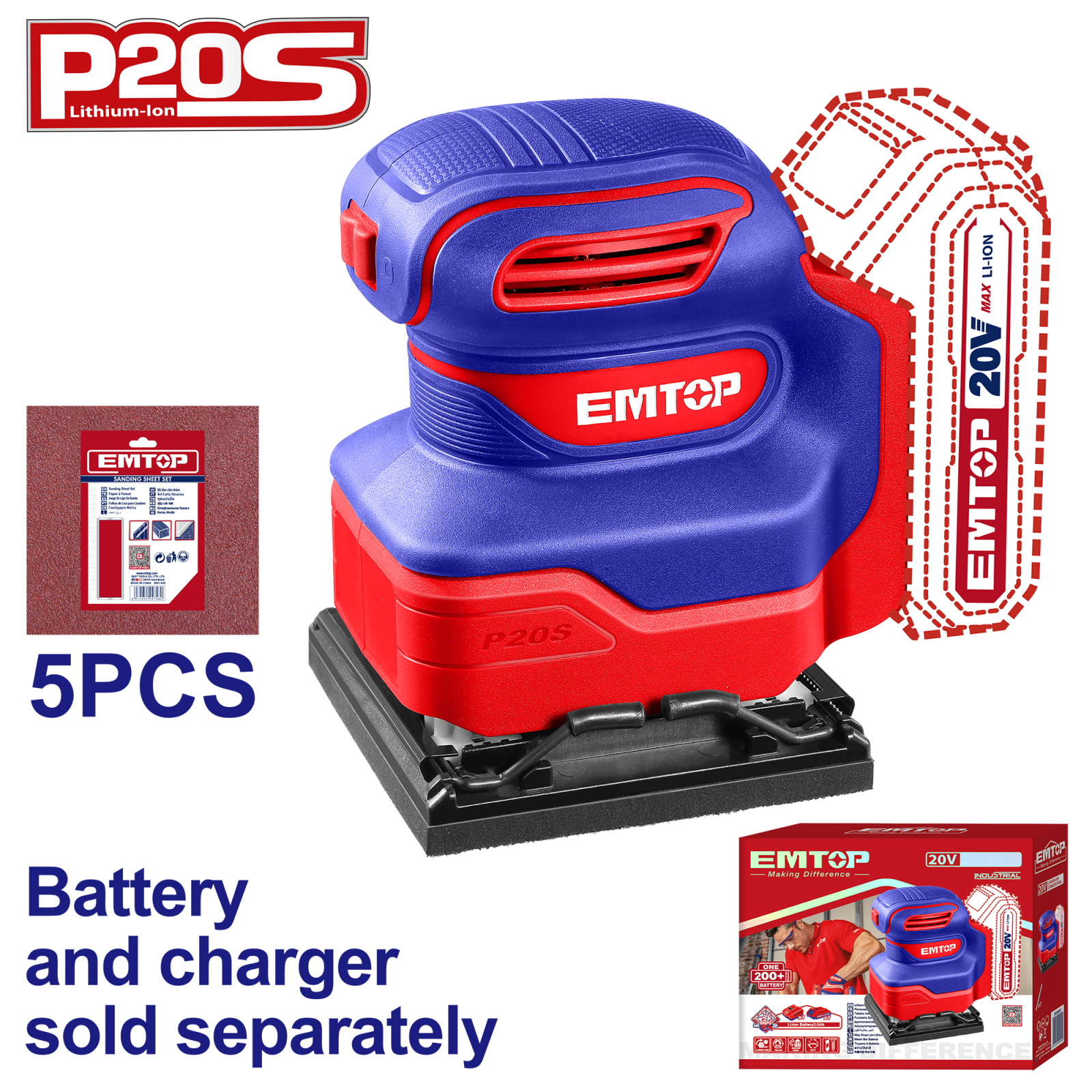 EMTOP Slefuitor fara acumulator si incarcator, 110x100mm - ELSHS2014, EMTOP