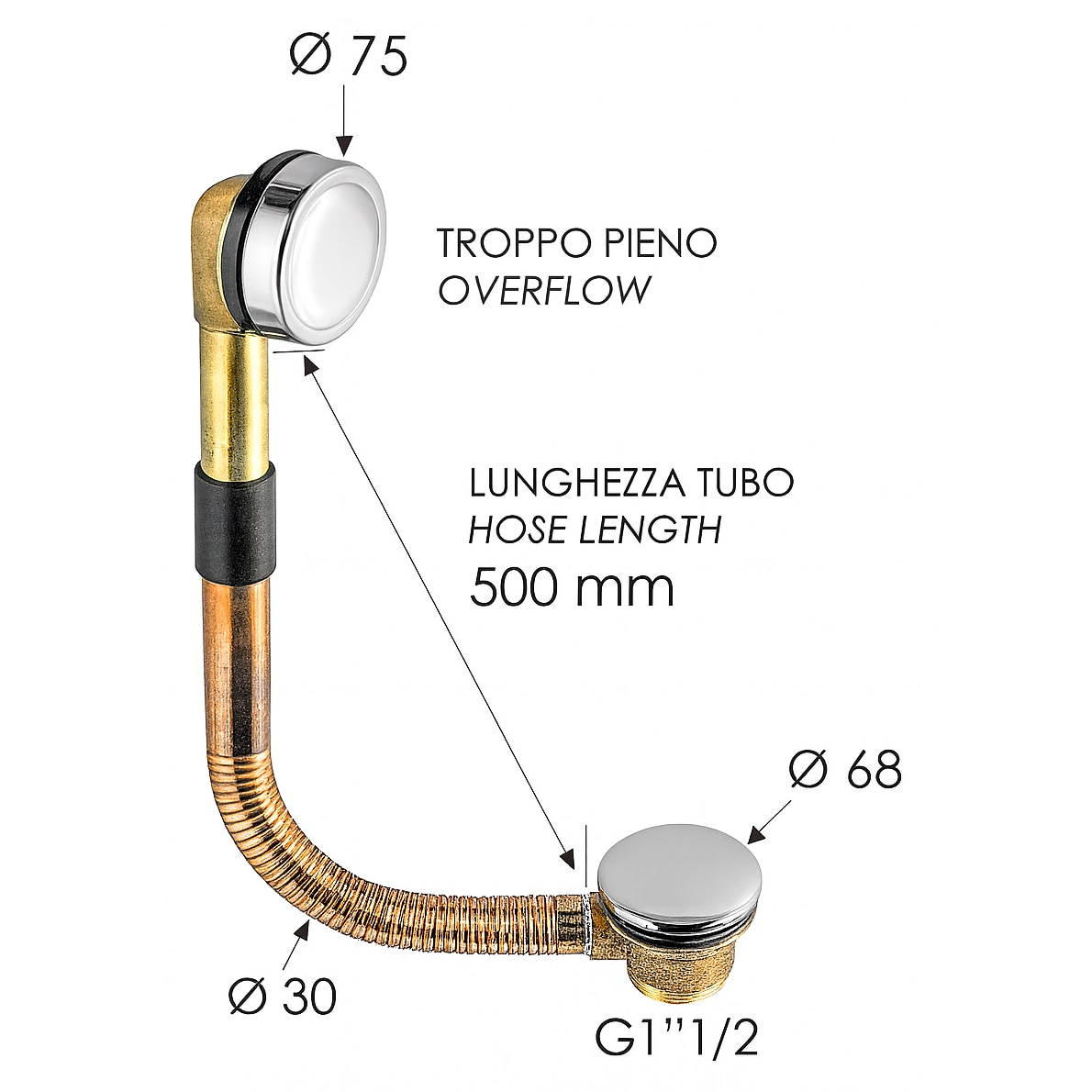 REMER Sistem de scurgere cada Remer Rubinetterie Minutery 96CC, click-clack, tub din cupru, G1”1/2, diametru click-clack 68 mm, prea-plin 75 mm
