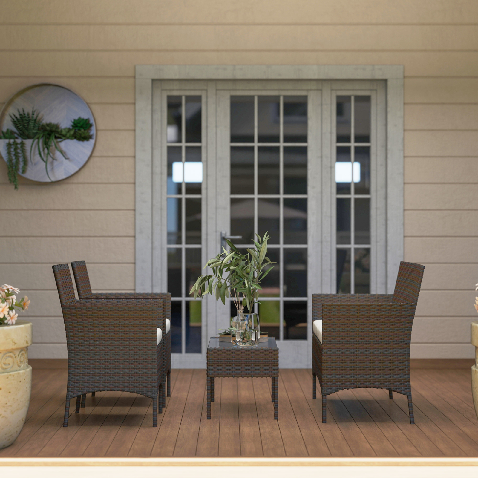 Ofera o nota de stil gradinii tale private cu setul de exterior de la [BRAND NAME]. Compus din 2 scaune, o canapea mica si o masuta joasa, acest set de 4 piese este adaugarea perfecta pentru orice ambient exterior. Realizat din ratan PE tesut rezistent la UV, cu perne confortabile si o masa cu blat din sticla, setul nostru ofera o oportunitate de a-ti oferi momente de relaxare si socializare in companie.