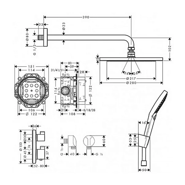 Hansgrohe Sistem de dus incastrat Hansgrohe Croma 280 Ecostat S negru mat