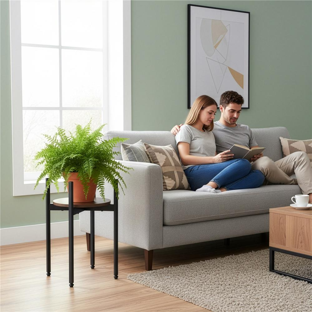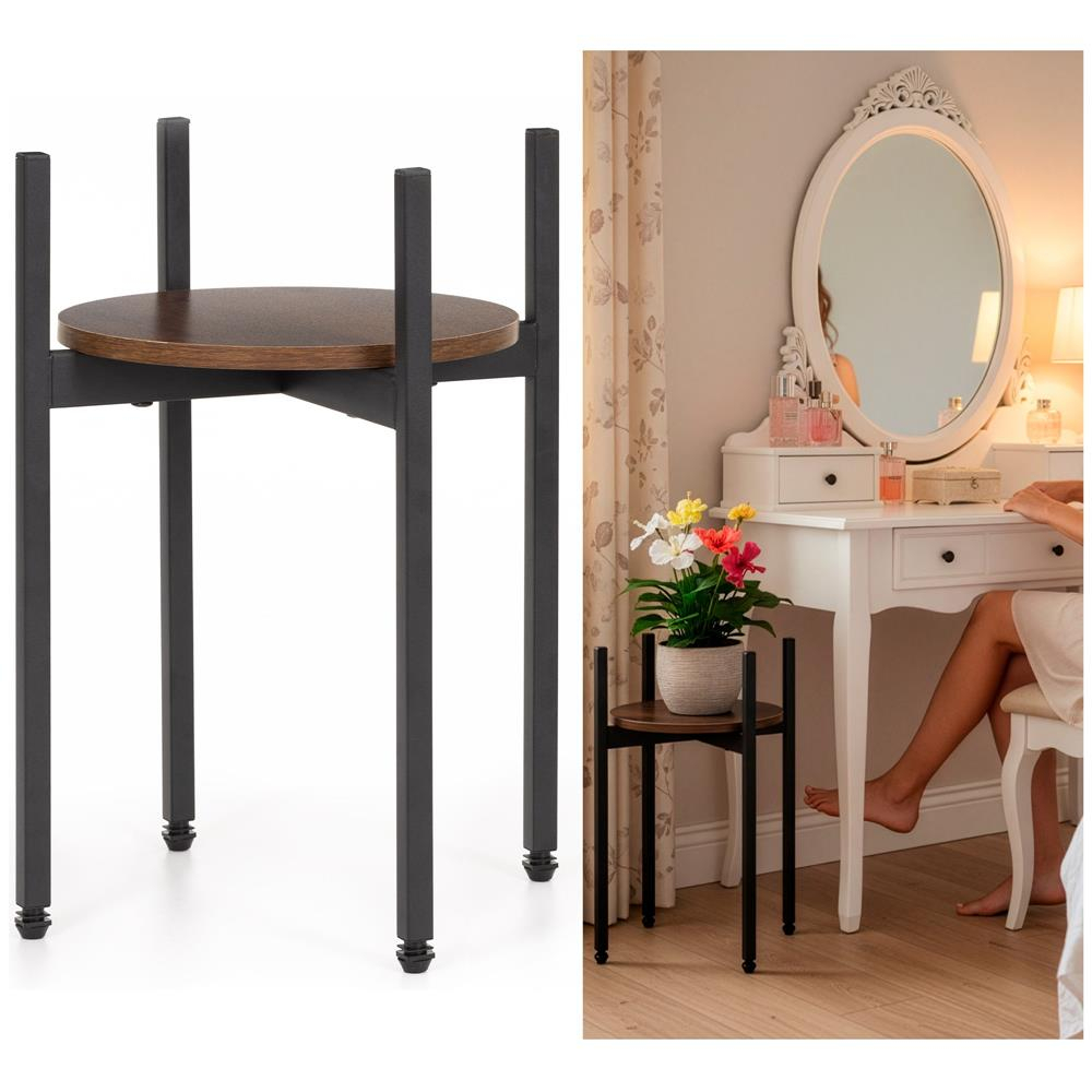Specificatii tehnice: Material: Metal, MDF Culoare: Negru, maro Numar polite: 1 Incarcare maxima: 8 kg Dimensiuni generale: Inaltime totala: 42,5 cm Latime totala: 32 cm Adancime totala: 32 cm Toleranta dimensiuni: ±2% Scurta descriere: Suport compact cu polita rotunda din MDF si structura metalica stabila, potrivit pentru plante, decoratiuni sau obiecte de uz zilnic. Designul simplu si dimensiunile reduse il fac ideal pentru spatii mici, iar picioarele reglabile permit stabilizarea pe suprafete denivelate. Caracteristici principale: Design compact cu polita rotunda Structura metalica rezistenta Polita din MDF usor de intretinut Potrivit pentru plante sau decor Picioruse reglabile pentru nivelare Montaj simplu cu accesorii incluse
