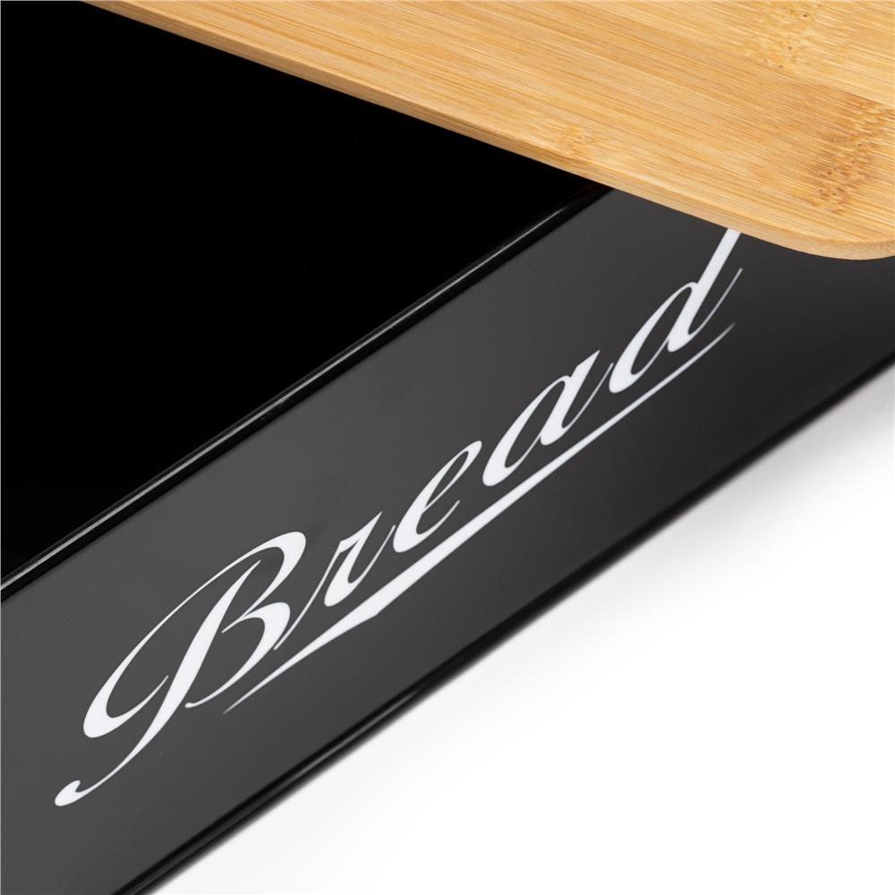 Cutie pentru paine realizata din metal cu finisaj lucios, prevazuta cu capac din bambus natural, ideala pentru pastrarea painii si a produselor de panificatie. Constructia solida protejeaza continutul, iar capacul din bambus completeaza designul modern cu un aspect natural. Produsul este sigur pentru contactul cu alimentele si potrivit pentru utilizare zilnica in bucatarie.