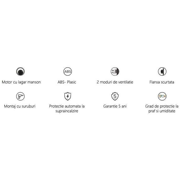 Ventilator baie VentEurope ROUND125, diametru 125 mm, debit 150 mc/h, IP24, 2 trepte, 17W silentios, economic, flansa scurtata, Alb