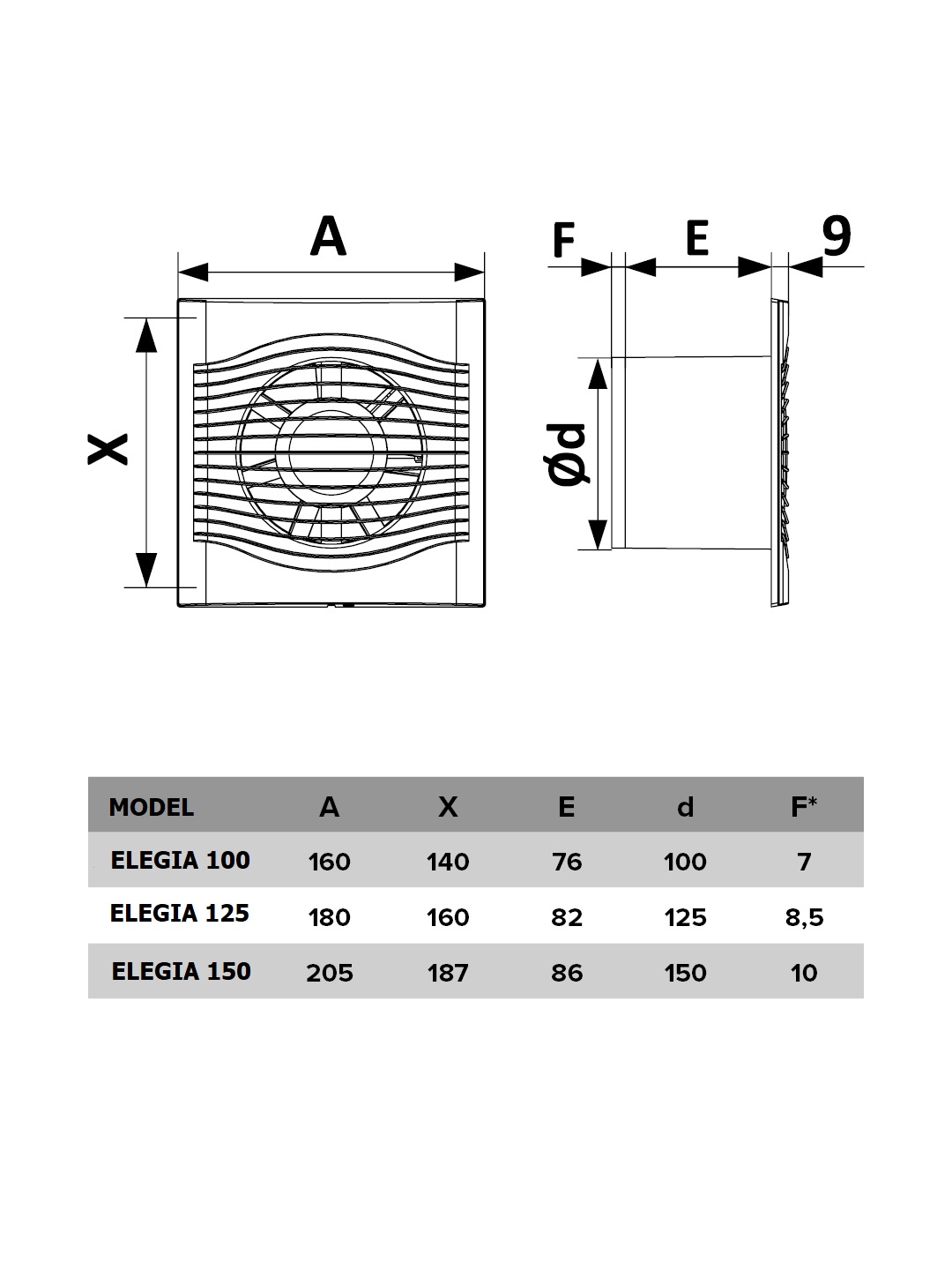 Ventilatorul de perete ELEGIA 100 BD face parte din seria Designer, fiind o solutie moderna si eleganta pentru ventilatia bailor, bucatariilor si altor incaperi rezidentiale. Carcasa si panoul frontal subtire sunt fabricate din plastic ABS de inalta calitate, cu finisaj in culoare gri metal, rezistent la umezeala, coroziune si decolorare.
