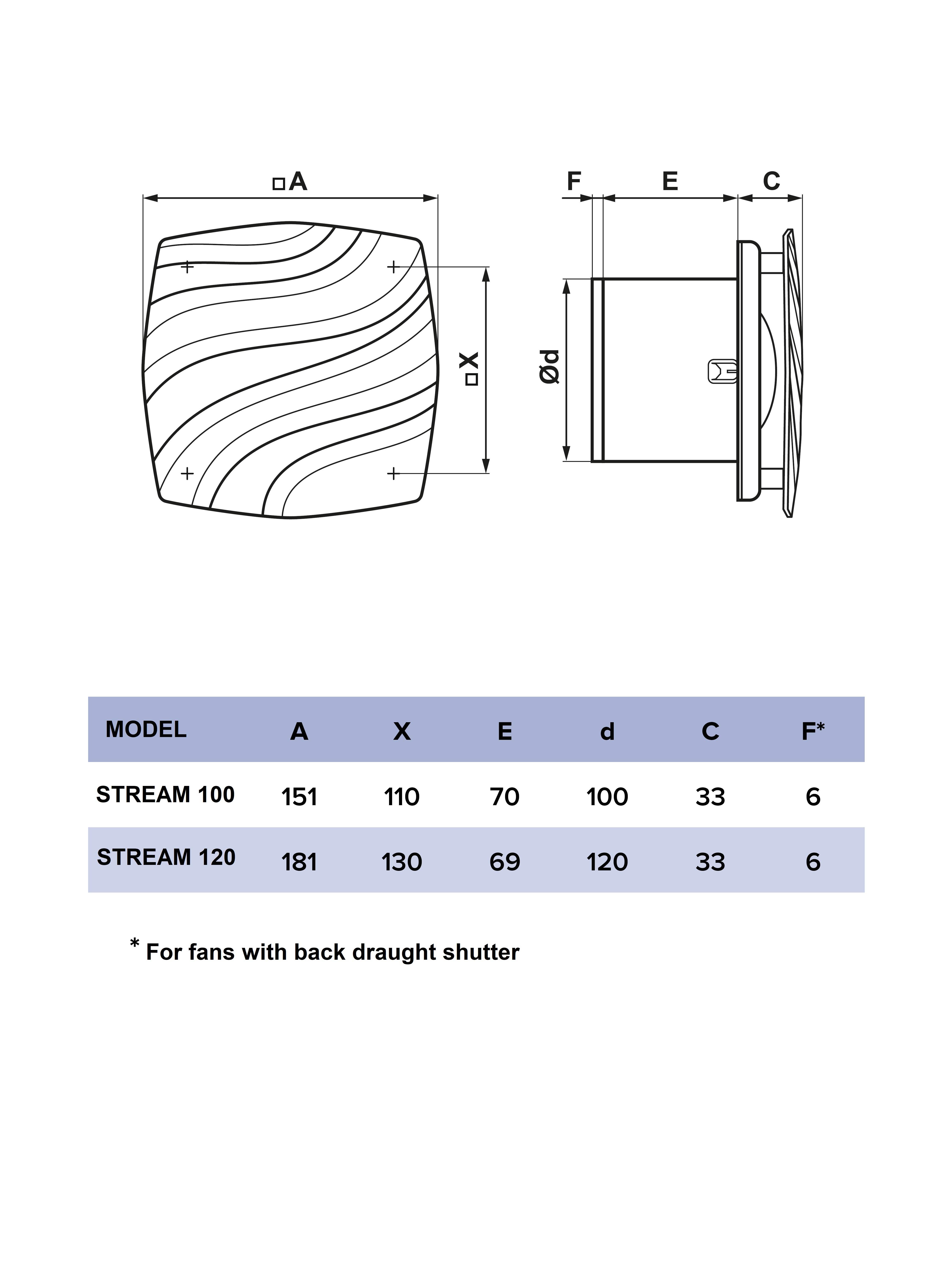 Ventilatorul de perete VentEurope STREAM100 este conceput pentru ventilatia constanta sau periodica a bailor, bucatariilor si altor spatii rezidentiale unde este necesara eliminarea umiditatii si a aerului viciat.