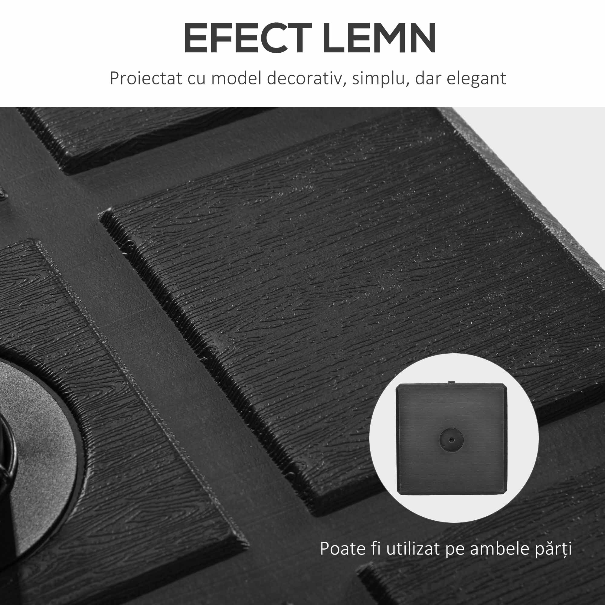 Imbunatatiti spatiul de locuit in aer liber cu baza eleganta si functionala pentru umbrele de gradina de la [BRAND NAME]. Aceasta baza nu numai ca adauga o nota decorativa, ci si mentine umbrela fixata in siguranta. Cu o capacitate mare, aceasta poate cantari pana la 30kg atunci cand este umpluta cu apa sau 40kg atunci cand este umpluta cu nisip. Aspectul cu efect de lemn este elegant si se poate asorta mobilierului dvs. de gradina. Bucurati-va de zilele petrecute sub umbrela cu aceasta baza din plastic pentru umbrela de soare.
