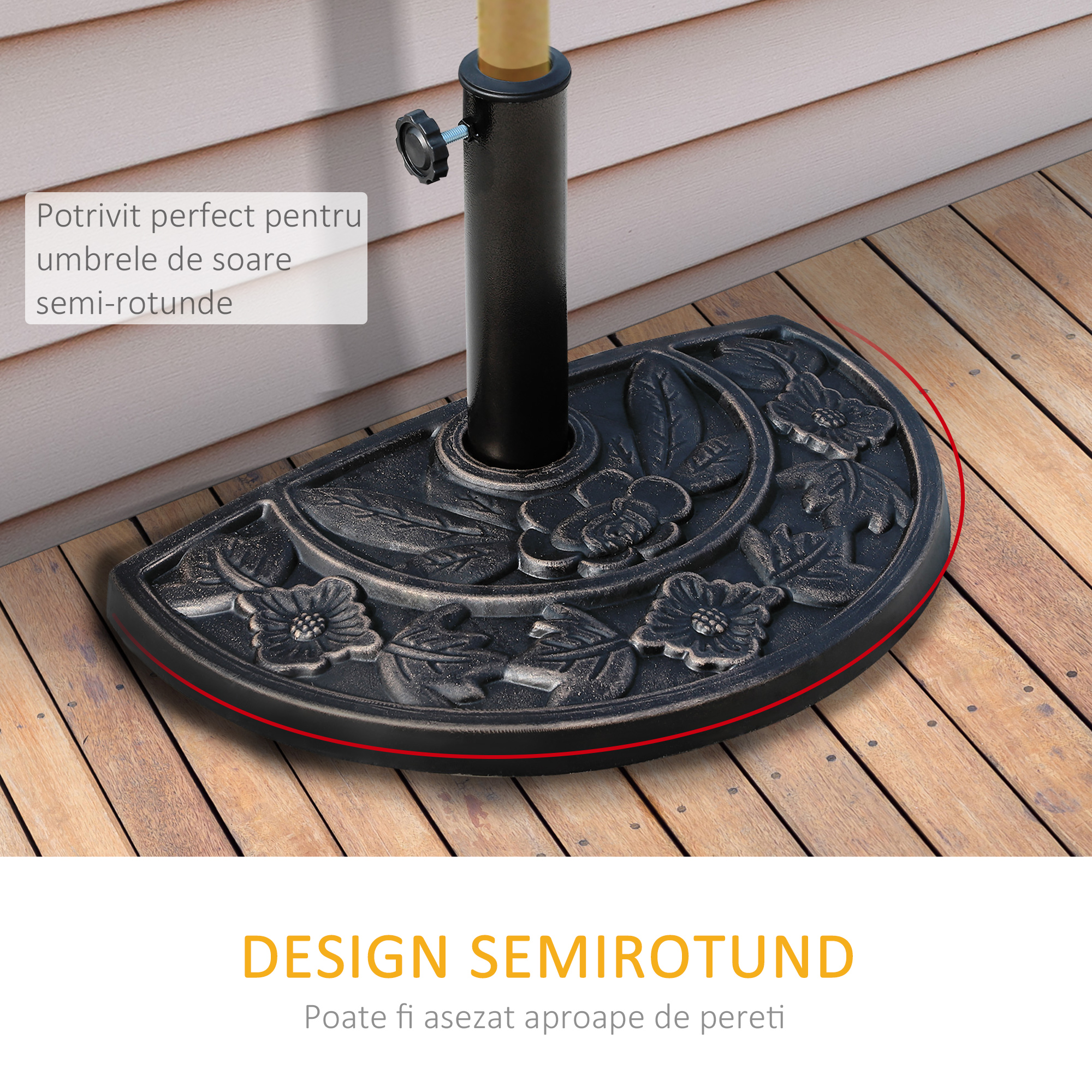 Daca doriti sa aveti o umbrela de soare in gradina dvs., nu puteti renunta la confortul oferit de o baza. Un supliment practic la curtea din spate sau la terasa, va mentine umbrela de soare stabila fara a fi nevoie sa va umpleti cu apa sau nisip. Rezistent la agentii atmosferici, sustine umbrele cu un diametru cuprins intre 3,8 si 4,8 cm. Include o manivela pentru a securiza mai bine umbrela.