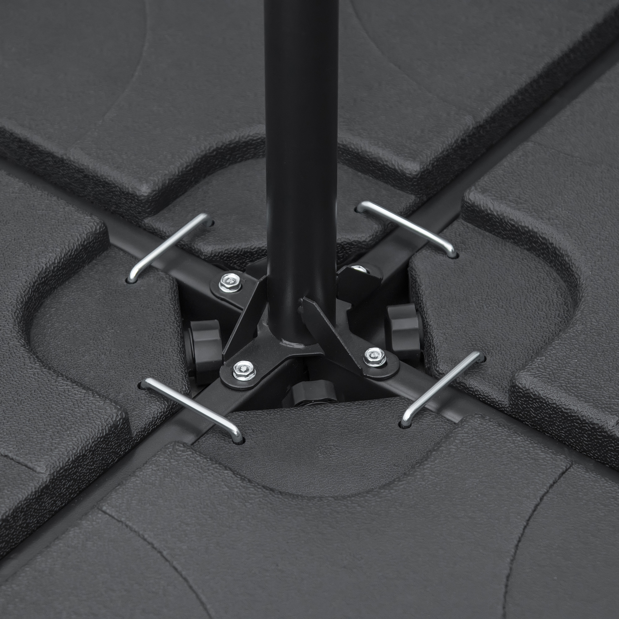 Aceasta baza pentru umbrela de gradina [BRAND NAME] ofera suport stabil structurii dvs. pentru a oferi intotdeauna umbra in aer liber. Fiecare piesa este realizata din plastic HDPE, care este durabil, robust si potrivit pentru utilizare in aer liber si are o deschidere de umplere a capacului cu filet pentru a turna 15 L de apa sau 19,5 kg de nisip. Cand sunt goale, aceste suporturi pentru umbrele sunt usor de transportat dintr-un loc in altul sau de depozitat.
