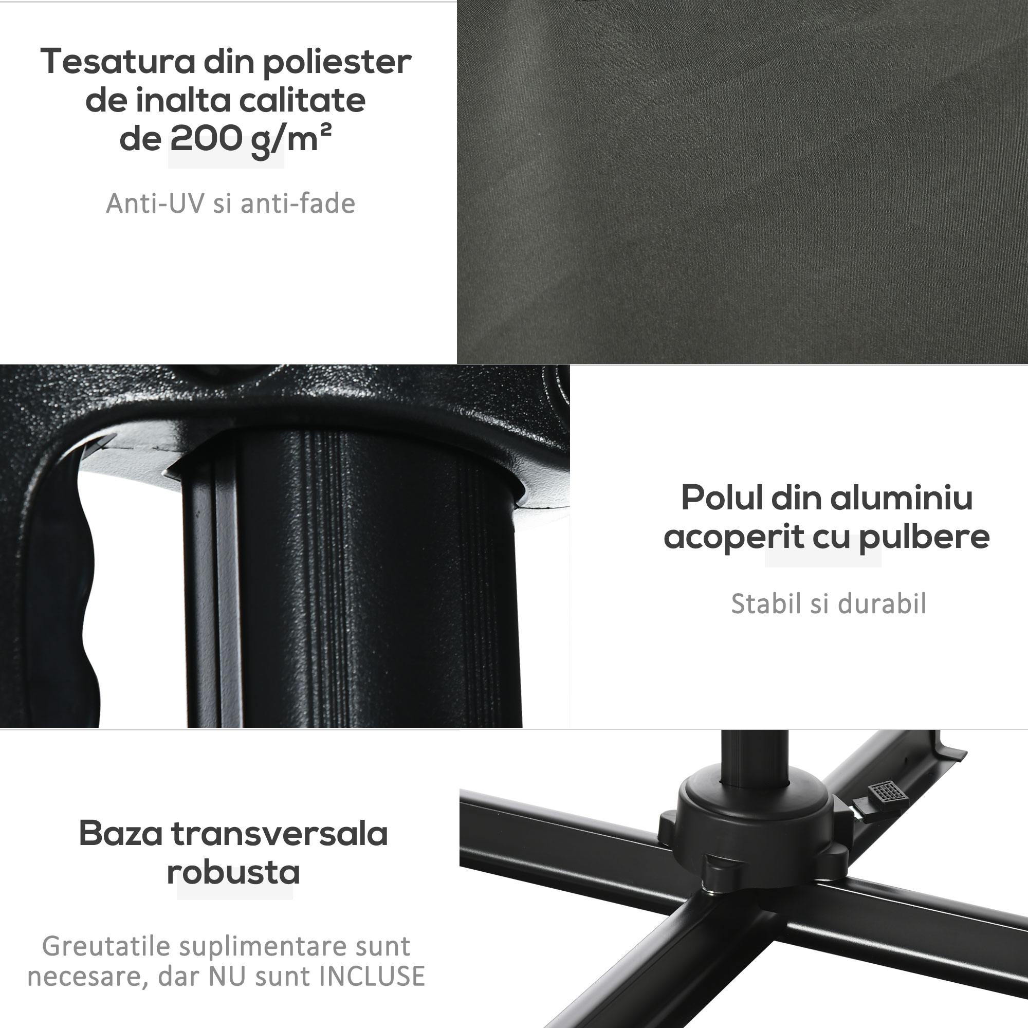 Umbrela de Gradina cu Manivela de Mana cu Unghi Reglabil pe 5 Niveluri si Rotatie la 360°, 245x245x245 cm, Gri