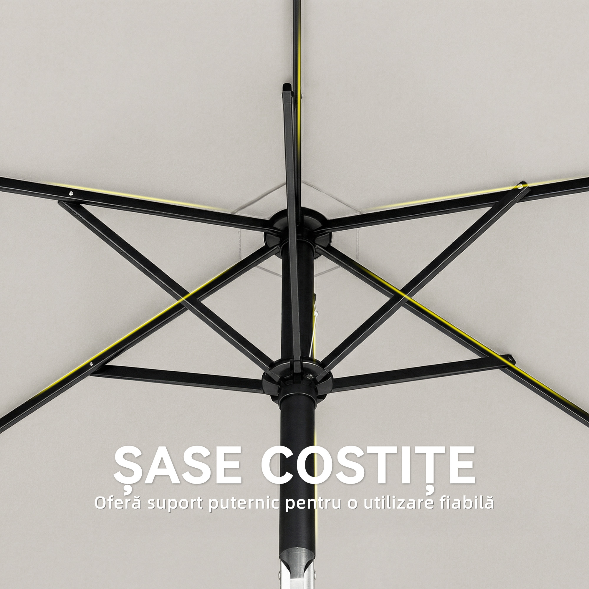 Bucurati-va de gradina, balconul sau terasa dumneavoastra cu aceasta umbrela de gradina de la [BRAND NAME]. Reglati unghiul pentru a urmari soarele si creati o zona umbrita confortabila pe tot parcursul zilei. Structura robusta din metal cu sase spite asigura stabilitate, in timp ce materialul din poliester cu strat PU ofera protectie UV30+ si rezistenta la apa. Aceasta umbrela inclinabila este perfecta pentru relaxare, mese sau distractie in aer liber cu confort si stil.