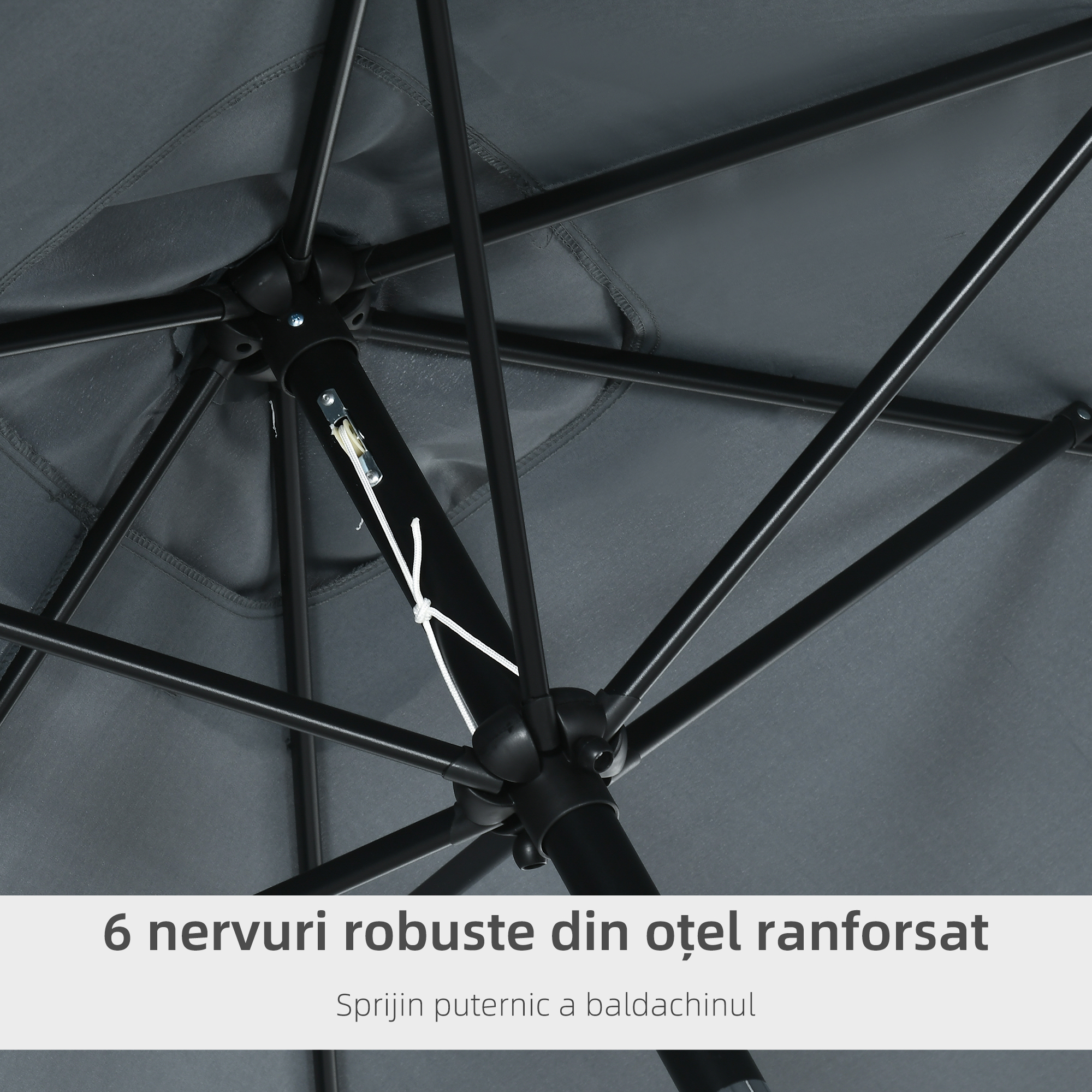 Umbrela de Gradina inclinabila cu Manivela si 6 Spiţe, 2x3 m, Gri inchis