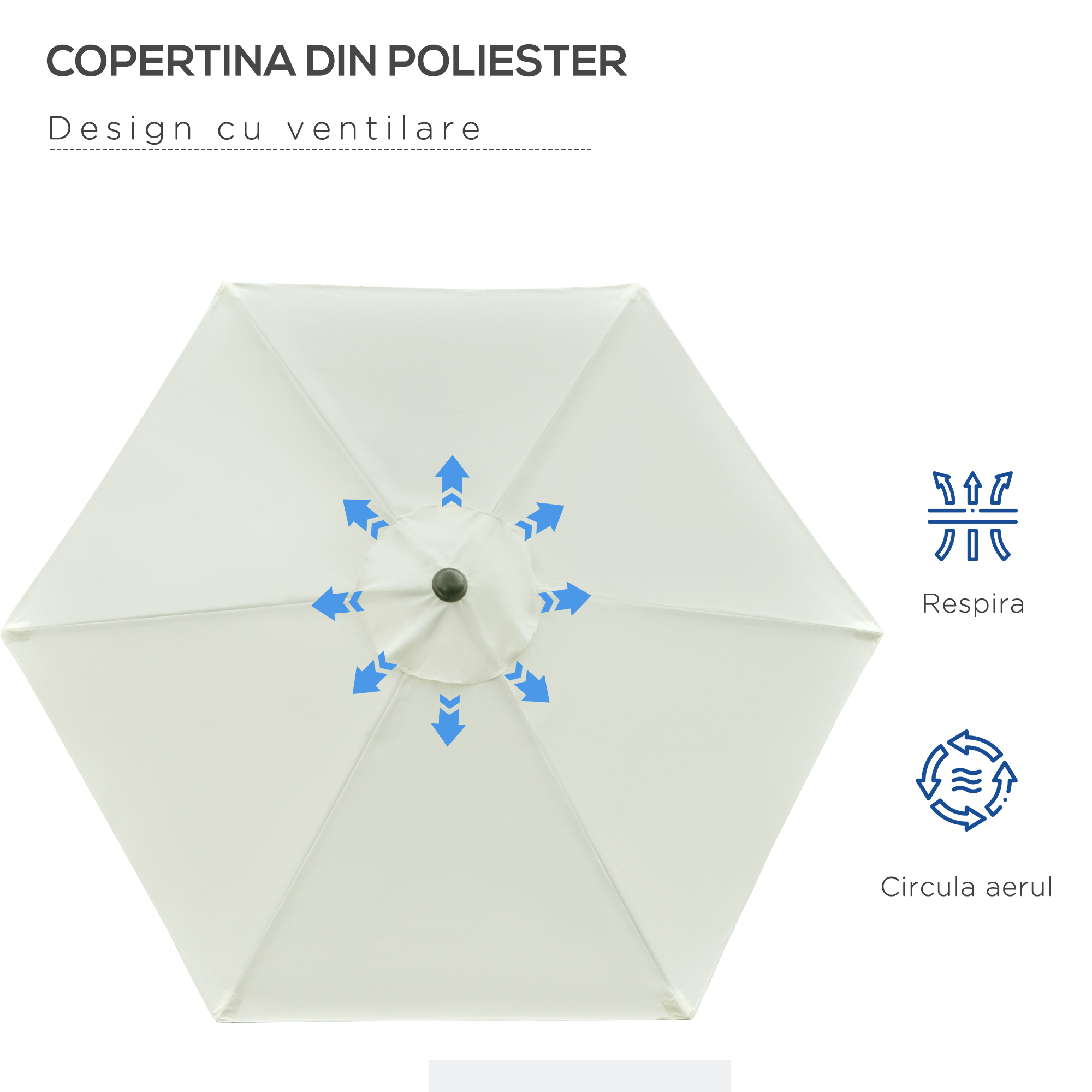 - Deschiderea din partea de sus a umbrelei permite trecerea aerului pentru a mentine umbrela stabila in timpul zilelor cu vant