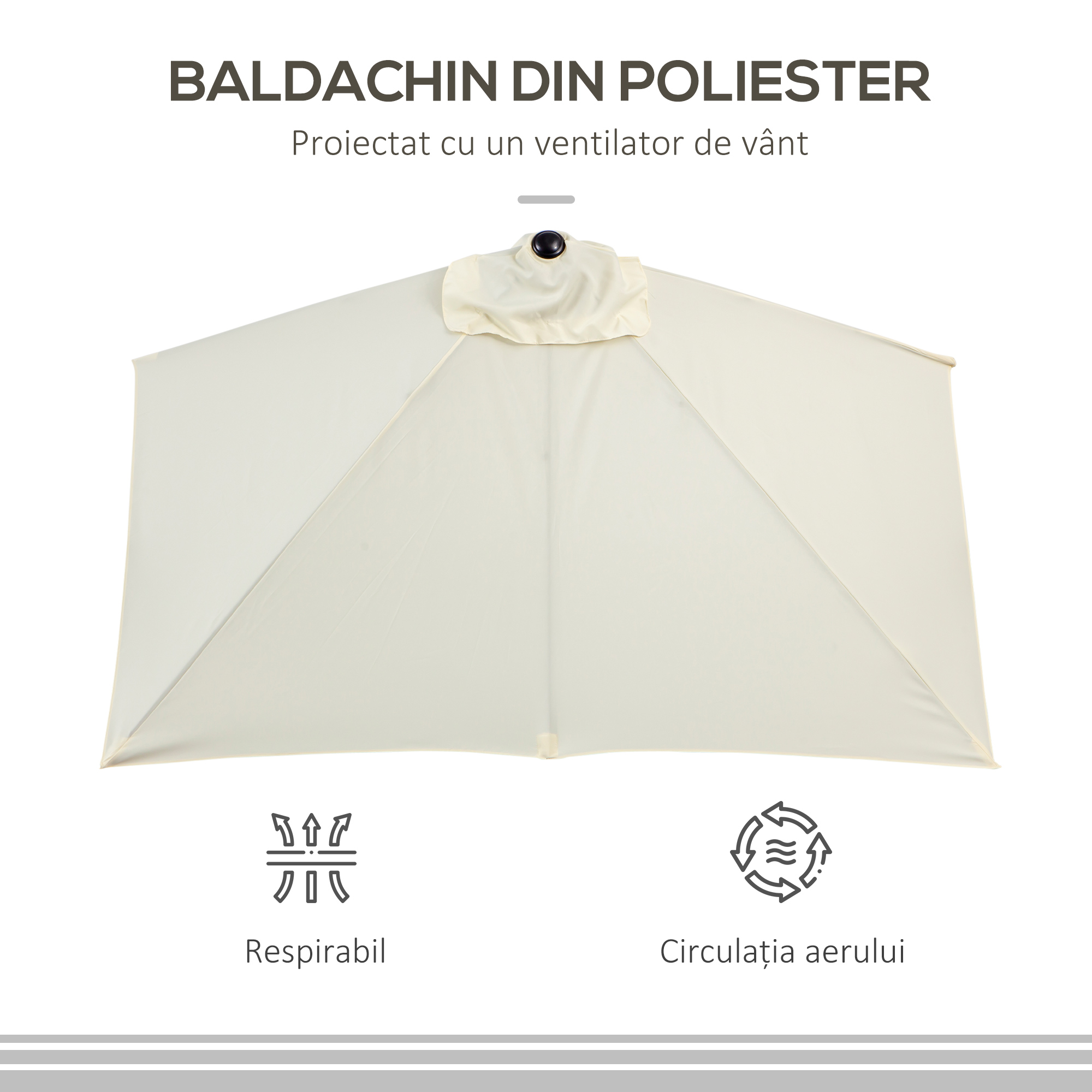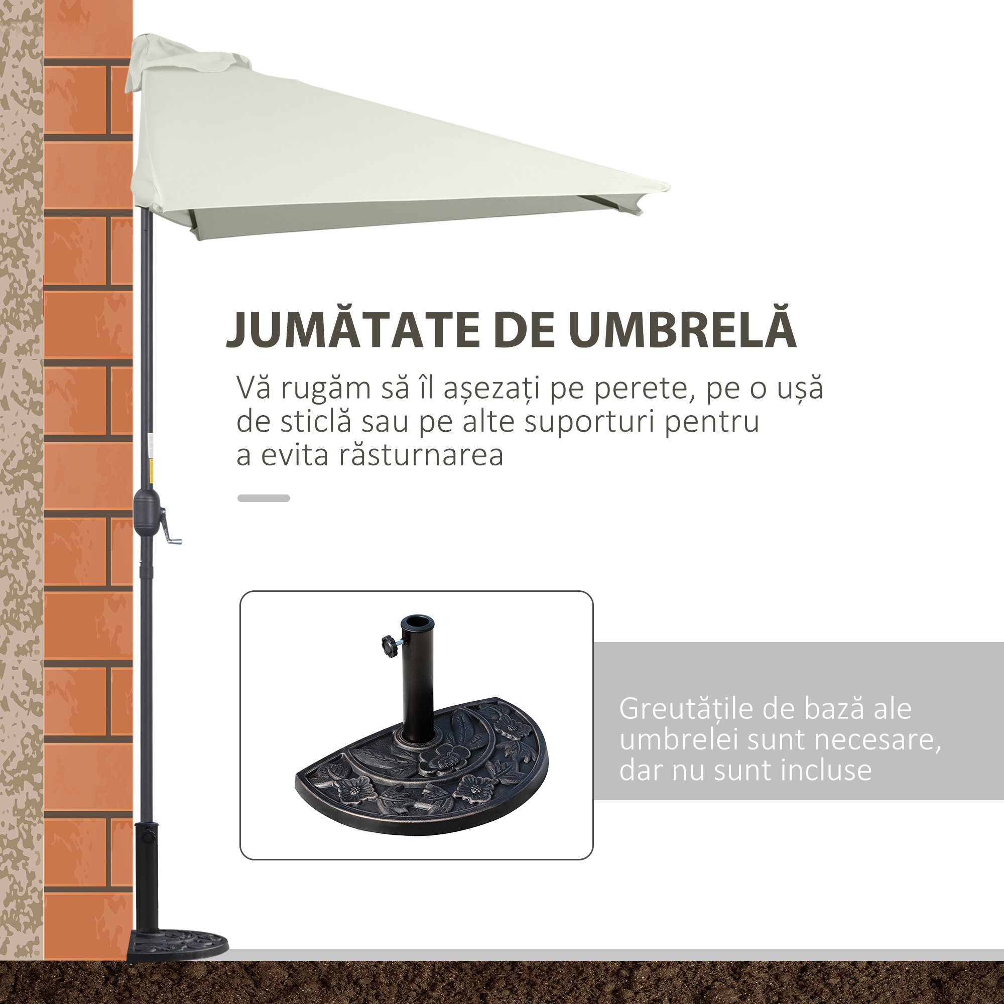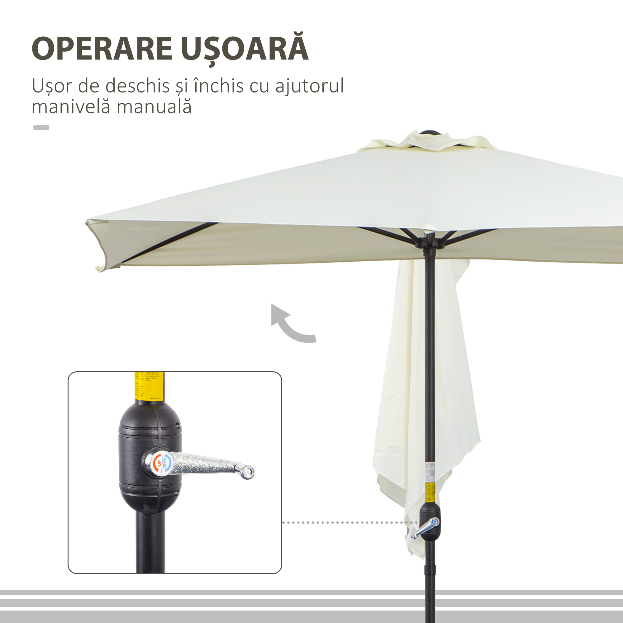 Aveti o terasa mica pe care doriti sa o protejati de soare? Aceasta umbrela semicirculara [BRAND NAME] este solutia perfecta pentru economisirea spatiului pentru dvs.! Este realizata cu un cadru metalic si o husa din poliester anti-UV, care va ofera protectie solara excelenta si rezistenta la utilizare. Foarte usor de folosit datorita sistemului de manivela, aceasta umbrela de soare in forma de semiluna este ideala pentru spatii mici.