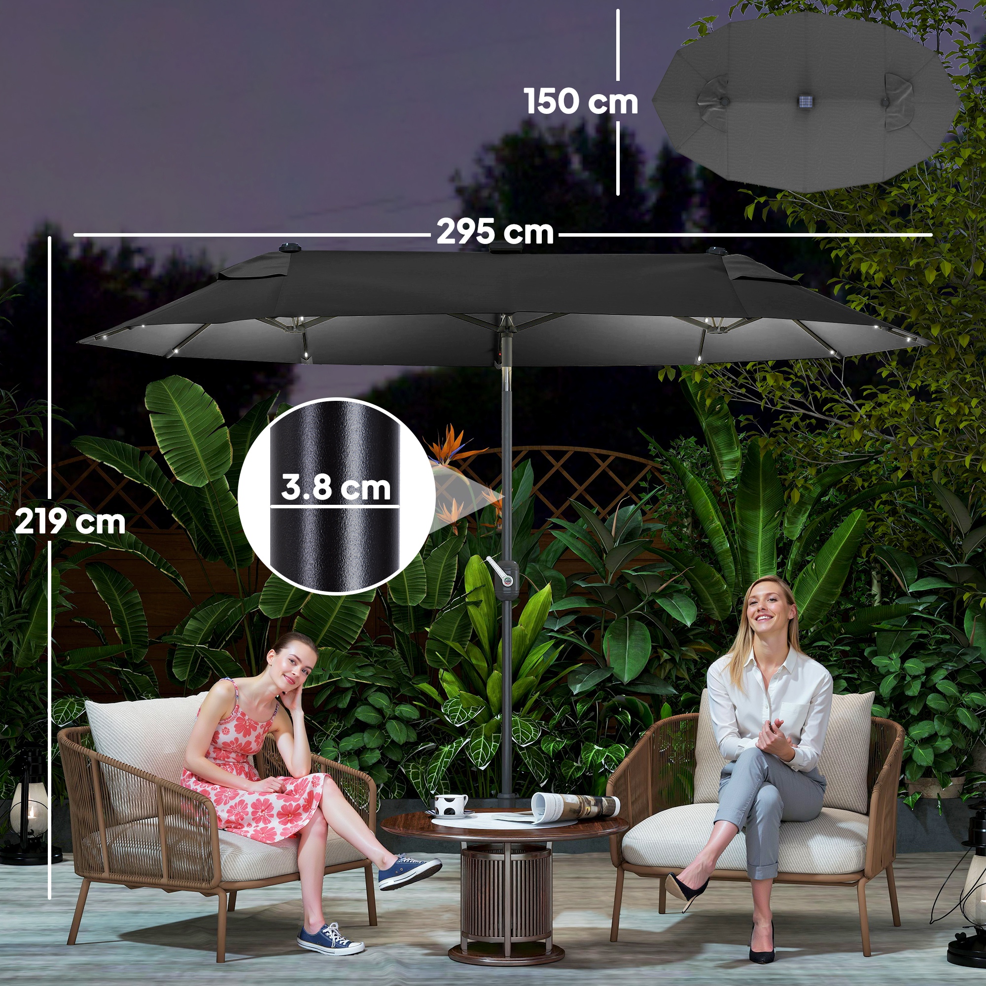 Va place sa cititi in aer liber? Va bucurati de picnicuri in briza de vara? Aveti o masa lunga pentru o umbrela, dar nu aveti o umbrela potrivita? [BRAND NAME] pentru lipsa arsurilor de soare. Aceasta umbrela de exterior cu baza va ofera umbra larga la un unghi pe care il controlati. Utilizati partea superioara inclinata pentru a scapa de lumina de oriunde. Cand este sfarsitul zilei, pastrati lumina soarelui. Sistemul LED cu energie solara al umbrelei lumineaza noaptea, economisind energie electrica si mentinand petrecerea dupa intuneric.