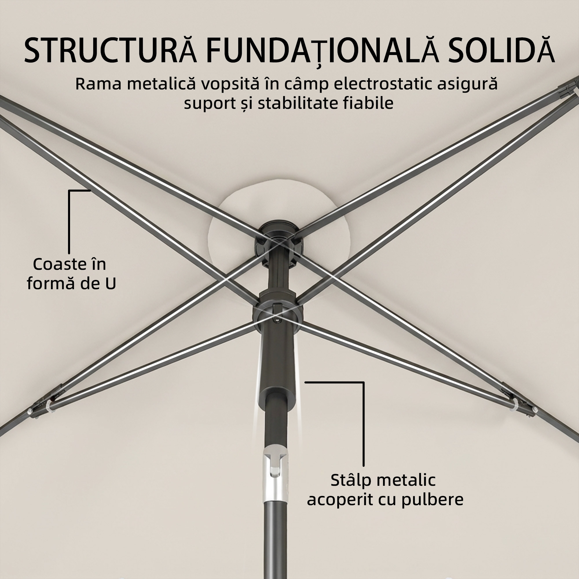 Profita la maximum de spatiul tau exterior cu aceasta umbrela eleganta si dreptunghiulara, perfecta pentru balcoane sau colturi primitoare. Baldachinul sau din poliester impermeabil te mentine uscat si adauga un plus de stil in ambientul tau. Pregatit pentru o aventura? Tija detasabila si geanta pentru transport fac usor sa iei umbra cu tine la picnicuri sau camping. Datorita inclinarii reglabile, vei ramane mereu racoros si confortabil pe tot parcursul zilei!