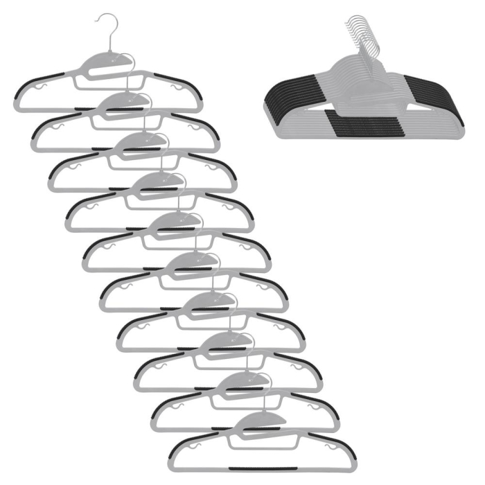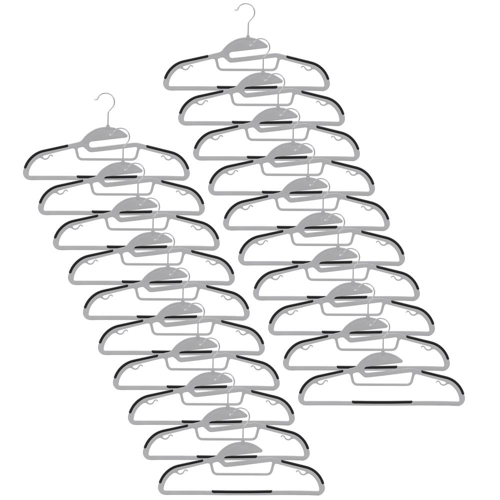 Set de 20 de umerase antiderapante pentru haine, din PE, cu carlig metalic rotativ, 41 cm, gri si negru
