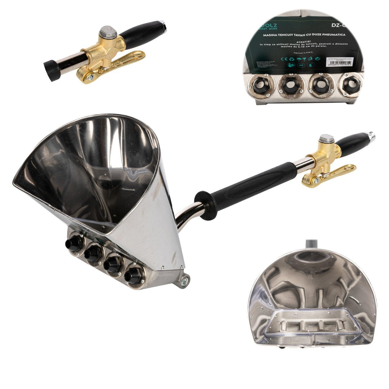 Masina de tencuit pneumatica cu duze Detoolz DZ C224 este destinata tencuirii tavanului.