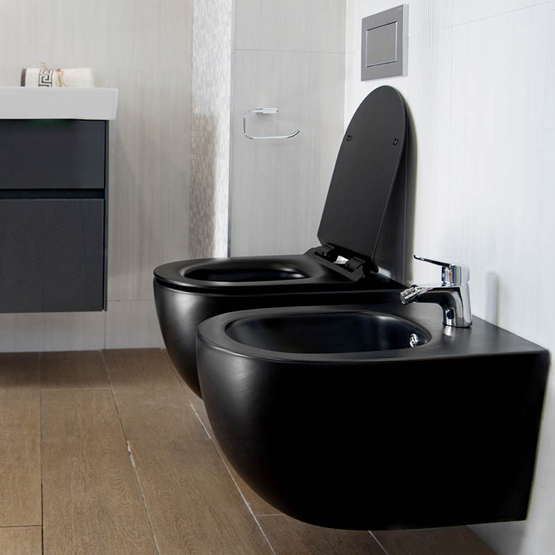 Set vas WC suspendat, Fluminia, Minerva, cu capac quick release si soft close, negru