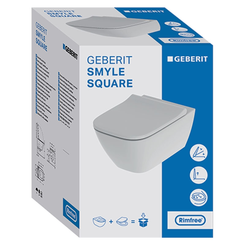 Geberit Set vas WC suspendat Geberit, Smyle Square, cu capac quick release, alb