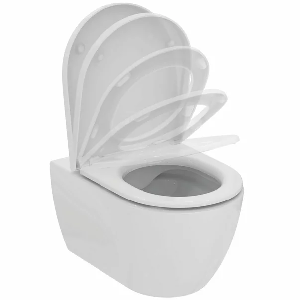 Set vas WC suspendat Ideal Standard Ellisse rimless cu capac softclose alb Detalii Set vas WC suspendat Ideal Standard Ellisse rimless cu capac softclose alb Transforma baia intr-un spatiu modern si elegant cu setul vas WC suspendat Ideal Standard Ellisse. Cu un design rafinat si linii fluide, acest model adauga un plus de stil si functionalitate oricarui ambient. Finisajul alb lucios al ceramicii sanitare ofera un aspect impecabil si este usor de intretinut, pastrand baia mereu curata si stralucitoare. Tehnologia rimless asigura igiena maxima, eliminand marginea interioara unde se pot acumula impuritati, iar sistemul de montaj ascuns contribuie la un look minimalist si elegant. Capacul softclose din duroplast adauga un plus de confort, inchizandu-se usor si silentios, prevenind zgomotele neplacute si eventualele deteriorari. Fiind un model suspendat, ofera libertate in amenajare si faciliteaza curatenia podelei, contribuind la un spatiu aerisit si modern. Cu dimensiuni compacte (54,5 cm adancime, 36,5 cm latime si 35 cm inaltime), acest set este solutia perfecta pentru o baie functionala si estetica. Rezervorul incastrat se achizitioneaza separat, oferindu-ti flexibilitate in alegerea solutiei potrivite pentru spatiul tau.