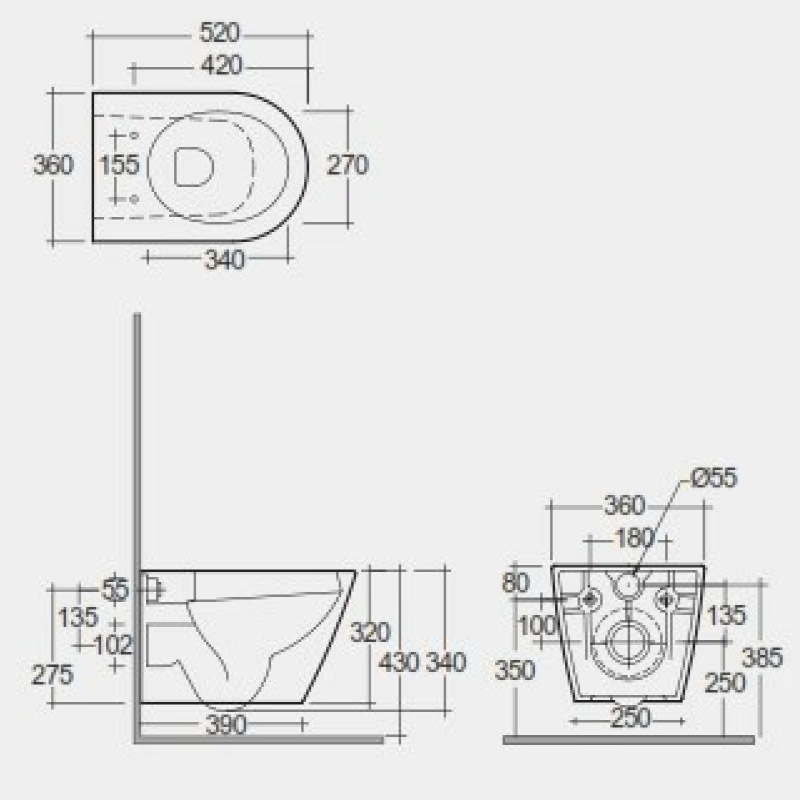 Explicarea termenilor:Rimless (Rimfree, Pur Rime, Direct Flush): vasele WC fabricate in tehnologia rimfree, nu au rama interioara (sunt "rimless"). Jetul de apa este astfel directionat incat spala perfect, dar nu stropeste in afara vasului. Neexistand nici un sant in interiorul vasului, acesta se curata complet. Practic aceasta tehnologie elimina spatiile greu acesibile, greu de curatat din corpul vasului de toaleta.