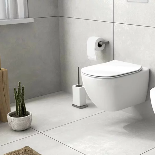 Vas wc suspendat Rimless cu functie bideu alb Ideal Standard Tesi Detalii Vas wc suspendat Rimless cu functie bideu alb Ideal Standard Tesi Modelul vas wc suspendat cu functie de bideu si fixare complet ascunsa Ideal Standard seria Tesi din portelan sanitar, culoare alb. Vas wc Tesi cu functie de bideu este ideal pentru baile mici, unde spatiul nu permite amplasarea unui vas bideu. Vasul wc este dotat cu iesire orizontala (P-Trap), alimentarea cu apa se face prin parte din spate a vasului. Spalarea vasului wc se face prin tehnologia Rimless (vezi video). Produsul se fixeaza pe o rama Ideal Standard, Geberit, Tece, Grohe (suruburile si teava de evacuare se livreaza impreuna cu rama). Capacul vasului poate fi cu inchidere normala sau cu inchidere lenta (soft close) si se comanda separat. Necesita baterie aparenta sau incastrata de dus pentru a folosi functia de bideu, care se comanda separat.