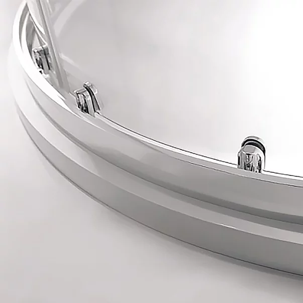 Cabina de dus semirotunda Roth Albis cu usi glisante 90x90 cm crom-transparent Detalii Cabina de dus semirotunda Roth Albis cu usi glisante 90x90 cm crom-transparent Transforma dusul zilnic intr-o experienta placuta si relaxanta cu cabina de dus Roth Albis . Designul semirotund si liniile curate ofera un aspect modern, potrivit atat pentru baile minimaliste, cat si pentru cele clasice. Sticla transparenta creeaza senzatia de spatiu deschis, in timp ce finisajul crom lucios adauga un accent elegant si luminos. Usile glisante cu role basculante asigura o deschidere lina si confortabila, chiar si in baile cu spatiu limitat. Manerele dreptunghiulare ofera o priza sigura si un plus de rafinament. Cabina se monteaza usor, fie direct pe pardoseala, fie pe o cadita compatibila de 90x90 cm, adaptandu-se perfect nevoilor tale. Sticla securizata de 5 mm grosime ofera siguranta sporita in utilizare, fiind rezistenta si durabila. Cu o inaltime de 190 cm, cabina Roth Albis ofera protectie excelenta impotriva stropilor si un confort optim in fiecare utilizare. Este solutia practica si estetica pentru o baie bine organizata si eleganta.