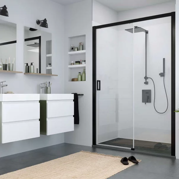 Usa de nisa culisanta Roth Cariba 130 cm sticla 6 mm negru dreapta Detalii Usa de nisa culisanta Roth Cariba 130 cm sticla 6 mm negru dreapta Alege eleganta practica pentru baia ta cu usa de nisa culisanta Roth Cariba , o solutie moderna si rafinata care aduce un plus de stil si functionalitate spatiului tau. Designul minimalist, cu profil negru anodizat si sticla transparenta, transforma zona de dus intr-un punct de atractie vizuala, ideal pentru interioare contemporane. Sistemul de glisare cu role de calitate superioara asigura o deschidere lina si silentioasa, oferindu-ti confort in utilizare zi de zi. Sticla securizata de 6 mm este tratata cu tehnologia RothETC , care respinge murdaria si calcarul, facilitand curatarea si pastrand suprafata impecabila pentru mai mult timp. Usa poate fi montata atat pe cada de dus, cat si direct pe pardoseala, oferindu-ti flexibilitate in amenajare. Ideala pentru spatii moderne, usa culisanta Roth Cariba este alegerea perfecta pentru un dus elegant, usor de intretinut si gandit pentru confortul tau.