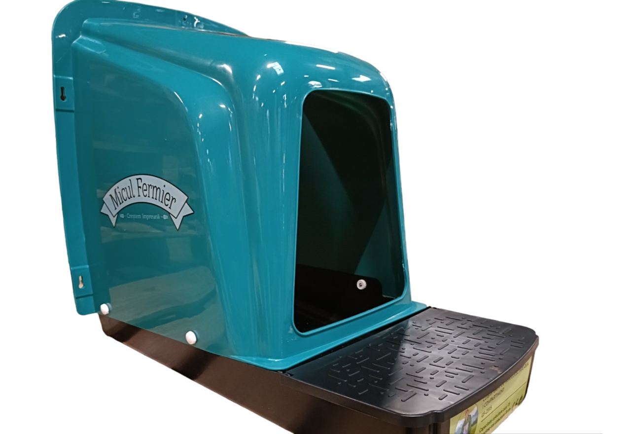 Partea de jos este inclinata ceea ce asigura alunecarea oualor in siguranta (fara sa se sparga) in cutia de colectare.